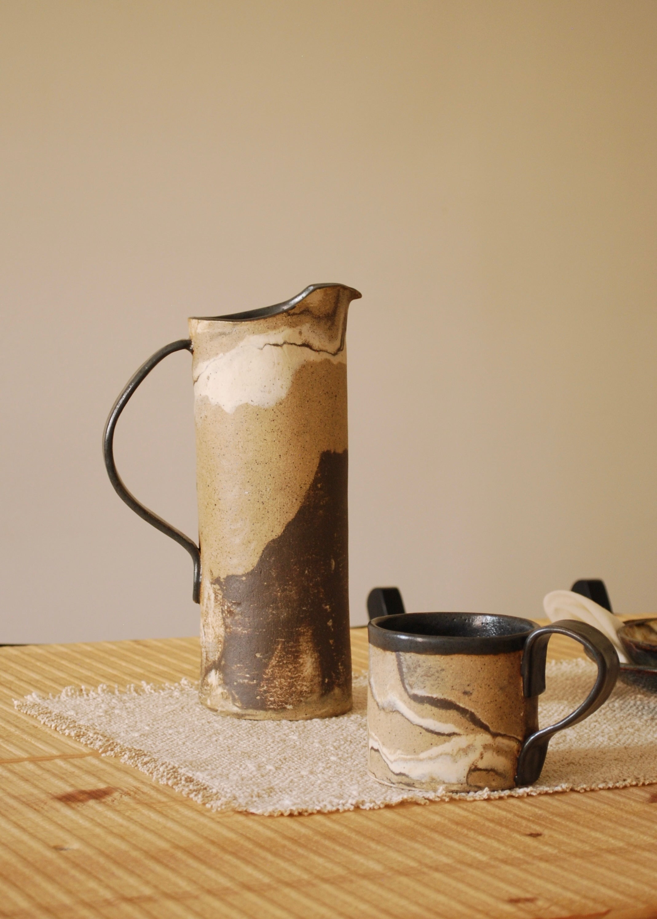 OUR CORE COLLECTION FEATURES HANDMADE TABLEWARE FORMED FROM THREE CLAYS, BLENDED TO ACHIEVE A GENTLE MARBLED EFFECT. THE RESULT IS A TIMELESS FOUNDATION OF PIECES DESIGNED FOR DAILY USE, EACH ONE MARKED BY ITS OWN ORGANIC PATTERN.